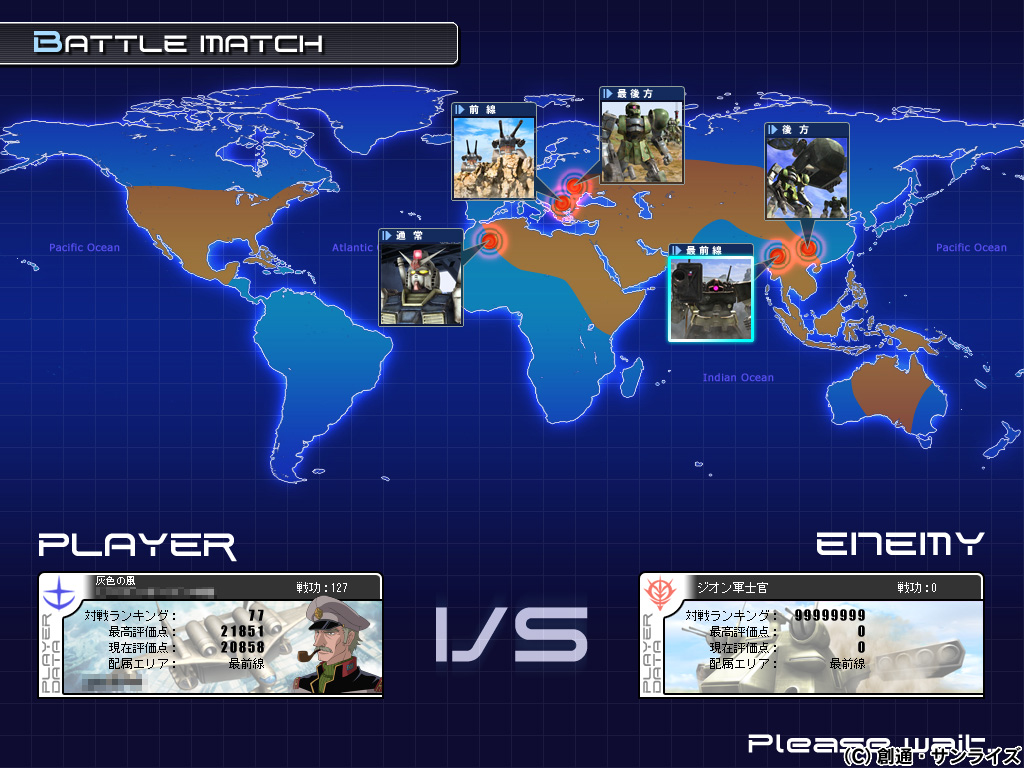 プレイヤーは、「連邦軍」、「ジオン軍」、いずれかの部隊長の立場となり参戦し、4つの機体から構成される部隊を作り上げる事を目的とし、自らが所有する「機体ユニット」、「パイロットユニット」、「アイテムユニット」、「戦術ユニット」を事前に組み合わせを指示して戦う事になります。 また、戦闘シーンは迫力のあるフル3Dバトルがリアルタイムで実現されており、複数のモビルスーツによって行なわれる「1年戦争」の世界を存分に体感する事が可能です! |
