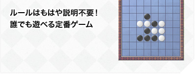 | 全国のユーザーと熱い闘い!オンライン対戦できるリバーシがゲームポータルサイトの大手、アットゲームズで登場! 内容は、誰もが知っているシンプルなオセロオンラインゲームです! |